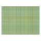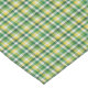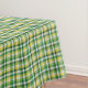 Esta toalha de mesa é mostrada em uma estampa xadrez verde, amarela e branca.