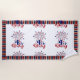Uma toalha de festa única na praia com vibrações patrióticas para a comemoração do Dia da Independência de 4 de julho. A ilustração tem o padrão de Sinalizador Americano reborda com estrelas e listras em vermelho, branco e azul. Perfeito para um piquenique ao ar livre e também para uma ideia de presente.