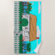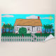 Casa com cerca perto da água da praia com árvores e flores por toda a parte. As configurações de montagem em segundo plano. Duas mulheres lá fora se exercitando enquanto uma mulher olha pela janela enquanto o rádio toca. O cão latido no flamingo que anda e o veleiro passa calmamente.