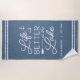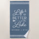 Atualize sua configuração ao ar livre na sua morada ao lado do lago com esta linda toalha personalizada de praia com a frase "A vida é melhor no lago" em letras brancas acentuadas com uma âncora e um remos. Personalize com seu nome de família e/ou ano estabelecido abaixo. Perfeito para festas de casas do lago, casas de verão ou aluguéis de férias.