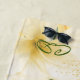 Fundo amarelo, branco com um padrão de mel. Decorados com flores tropicais, cor de creme, amarelo-claro, hibisco e abelhas-tronco felizes. Adicione suas próprias iniciais de monograma. Cartas verdes.