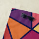 Esta toalha de praia apresenta um padrão abstrato de triângulos em roxo, magenta, marinho, laranja, coral e amarelo para um aspecto colorido.