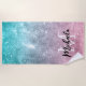 Toalha De Praia Abstrato Monograma de galáxia verde-rosa-rosa