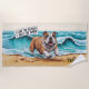 Toalha De Praia Adicionar nome, Cachorro Bulldog em Execução nas O