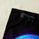 Água-viva grande, azul, desenhada artisticamente, brilhante, brilhante, com longos tentáculos sobre fundo preto com bioluminescência roxa. Água-viva luminosa.