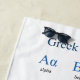 Letras gregas minúsculas e maiúsculas com seus nomes. Objeto vetorial com cores personalizadas para título, letras e nomes de letras. Cor de fundo personalizada.