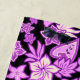 Via violeta, rosa e preta. Impressão tropical divertida, feminina e caprichosa com flores de hibisco, corações e folhas de monstera. Este design vem em várias cores.