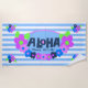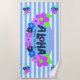 Púrpura azul, violeta, azul real, verde limão e marinho azul. Flores de animação ajudam a enviar a mensagem de que Aloha significa olá! Este design toca sobre uma faixa de praia de asa e está disponível de várias maneiras.