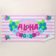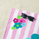 Cor rosa, lacrimejo, aqua, fúcsia, verde limão e rosa. Flores de animação ajudam a enviar a mensagem de que Aloha significa olá! Este design toca sobre uma faixa de praia de asa e está disponível de várias maneiras.