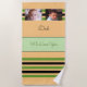 Adicione duas fotos a esta toalha de praia para pai. Nós te amamos, com listras. Cor verde, laranja e preto.