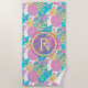 Toalha De Praia Ananás roxos bonito e Folhas Tropicais Azuis