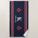 Toalha De Praia Âncora Clássica Monograma Azul Branco Vermelho Náu