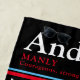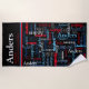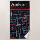 Texto típico de nome curto, azul escuro, azul-escuro, azul-céu, vermelho, branco em um nome personalizado de fundo preto que significa design de toalha de praia. A cor de fundo pode ser alterada se necessário. Toalha personalizada de texto gráfico divertida personalizada. Personalize com seu próprio nome abreviado e significado de nome, atualmente lê Anders Manly. Corajoso, forte e valente. © Art, design e nome significa Sarah Trett para www.mylittleeden.com