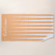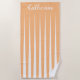 Listras assimétricas cor-de-rosa para criar um efeito pleat falso. As listras triangulares encontram-se para se tornarem uma cor sólida na extremidade oposta da toalha. Mostrado em cor de pêssego de damasco, laranja e branco. Pode ser personalizado com a cor de sua escolha com branco usando as opções de edição. Personalize com seu nome ou mensagem na fonte do script de rico branco.