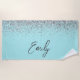 Toalha de Praia Nome Monograma Brilho Aqua Azul Teal Prata. Isso torna o presente perfeito para aniversário de 16 anos, casamento, chá de noiva, aniversário de casamento, chá de bebê ou festa de despedida de solteira para alguém que ama luxo e estilos chiques.