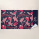 Padrões Tropicais Ara Parrot Desenhando Monograma Name Beach Towel. Padrão de ara sobre fundo azul escuro com folhas tropicais em cores verdes, vermelhas e beges com um nome em roteiro rosa. Excelente para amantes de papagaios e donos de papagaios. Adicione seu nome ou monograma. As toalhas também estão disponíveis apenas com o padrão - abra a coleção abaixo.