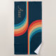 Ilustração geométrica de padrões de arcos duplos com estilo retrorativo com riscas de cor azul, azul, vermelha e bege em fundo azul escuro. Adicione o seu nome/monograma ou elimine o texto.