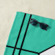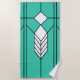 Esta toalha de praia tem um design de diamantes e linhas em branco, preto e turquesa com janela de vidro colorido.