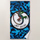 Arte Gecko Esta toalha é decorada com uma bela e espumante silhueta de lagartixa multicoloração em círculo. O fundo é um padrão preto e azul ondulado relembrando a água. O texto engraçado dizendo "Art Gecko" é uma referência a "Art Deco", você pode personalizá-lo como quiser.
