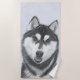 Toalha De Praia Arte de Cão Siberiana (Preto e Branco)
