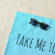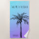 Aproveite esta divertida design de toalha tropical da praia com as palavras "Leve-me à Praia", com uma silhueta preta de palmeiras com cocos sobre um céu azul e roxo. Personalize-o com seu nome e frase.