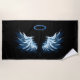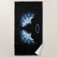 Toalha De Praia Asas Anjos Azuis Brilhantes em fundo preto