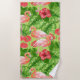 Toalha De Praia Aves Flamingo e plantas tropicais