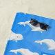 Esta bela design apresenta uma baleia beluga sobre um fundo azul vívido. Personalize facilmente com uma inicial!