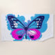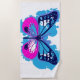 Design gráfico original em um estilo do "pop art" que caracteriza uma borboleta multi-colorida em um fundo brilhante.