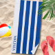 Toalha De Praia Azul E Branco Cabana Listra Nome Personalizado