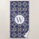 Toalha De Praia Azulejo Azul Branco, Italiano, Monograma Geométric