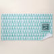 Fundo branco com ilustração de baleia num padrão sem descontinuidades e um monograma personalizado num quadrado duplo em sans serif