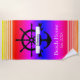 Toalha De Praia Bandas de faixa branca e âncora personalizadas