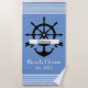 Toalha De Praia Bandas de faixa branca e âncora personalizadas