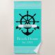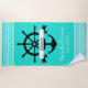 Toalha De Praia Bandas de faixa branca e âncora personalizadas