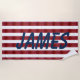 Série, de tábuas Abstrato, empilhadas a formar-se, listras largas, em tons apagados de vermelho, rosa, azul e preto, contra branco, fundo com a sua escolha de Monograma, em Marinho-azul.