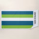 Blue White Vertical Stripes Personalizadas Beach Towel design original de Nisha Prabhu. Totalmente personalizável. Personalize com seu nome. Faça um salto este verão com nossa vibrante toalha de praia, com arrojado azul, branco nítido e faixas verdes verticais refrescantes. Perfeito para encharcar o sol ou secar após uma natação, essa toalha combina facilmente a funcionalidade com uma estética química. O design striped catching adiciona um pop de cor ao seu essencial de praia. Um presente perfeito para amantes de praia ou um presente para você mesmo! Transforme seus dias de praia com a nossa na moda Azul Azul, White Vertical Stripes Beach Towel e aproveite o sol no conforto e estilo! Quer você esteja construindo castelos de areia ou tomando uma bebida legal, esta toalha é um acessório obrigatório para sua diversão de verão.