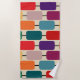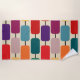 Esta toalha de praia tem um design Bauhaus de retângulos arredondados amarrados em filas.