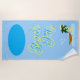 Beach day beach towel. Colorful with palm tree and a view of an island.