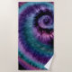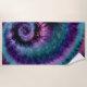 Toalha de praia com design de corante de gravata de tons roxos.