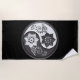 A yin yang symbol features intricate floral patterns on each side, one half in silver and the other in black. Delicate leaves and swirls add to the symmetrical elegance.