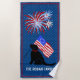 Este Labrador Negro orgulha-se do patriotismo americano com esta toalha de praia personalizada. Estas toalhas de praia fazem um excelente adicional para a sua casa de verão ou aluguel de férias!