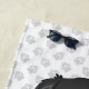 A ilustração original do desenho animado de Destei de um cão da raça Cavalier King Charles Spaniel, preto e cor-de-rosa, que está sentado. O fundo tem um padrão de estampas de cinza. Há também uma área de texto personalizável para um nome.