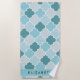 Toalha De Praia Blue Marroquino Trellis, Quatrefoil, Seu Nome