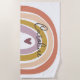 Peach Pastel Boho Rainbow Name Beach Towel em tons de rosa, pincel, mostarda, lavanda e pêssego apresenta uma ilustração fofa de um arco-íris.