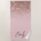 Toalha De Praia Blush Rosa Dourado Brilhante Monograma
