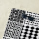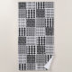 Esta toalha de praia tem um design de quadrados Boho com padrões em preto e branco.