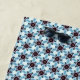 Repetir padrões geométricos numa formação simétrica usando tons azuis, pretos e brancos. A design centra-se em motivos circulares organizados para criar um efeito visualmente envolvente e equilibrado.