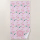 Toalha De Praia Bonita Girly Flamingo e Bikini Monograma Rosa