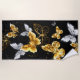 Borboletas Douradas, joias e brancas sobre fundo preto. Borboleta ouro.